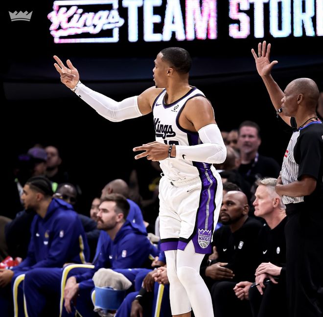威少三双23+16+10国王险胜勇士,德罗赞25分库巴追缺席库明加24+9