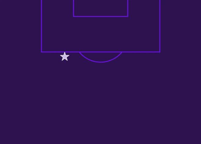 此前的33个英超进球全都来自禁区内。