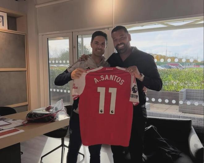 前阿森纳后卫桑托斯在阿森纳训练基地会见了前队友阿尔特塔。